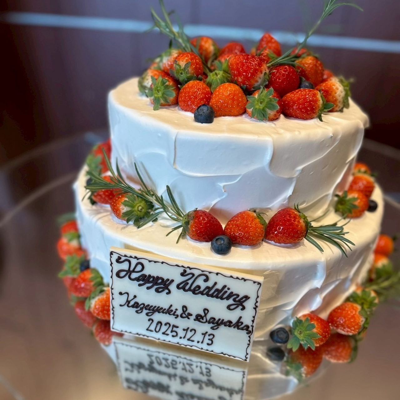 正直ウェディングケーキにお金をかけたくなかったので、シンプルなものをお願いしました。2段のケーキをお願いしましたが、フルーツのトッピングが可愛くて、写真映えも完璧でした!