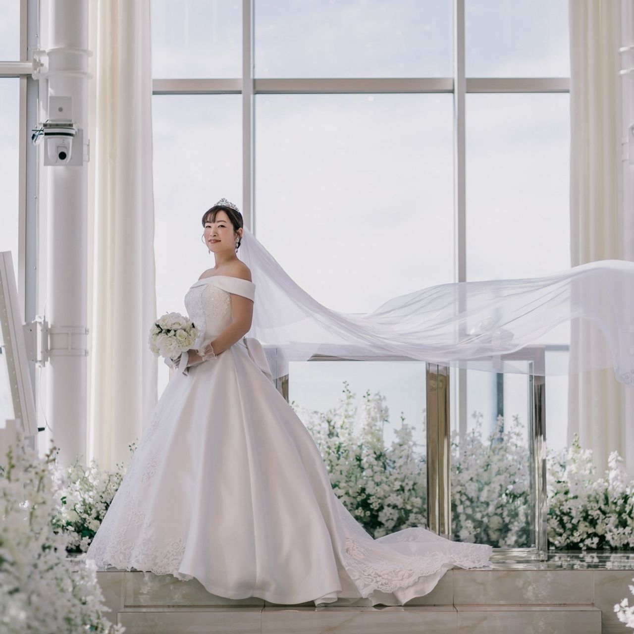 ウェディングドレスには、先輩に借りたティアラを合わせました。