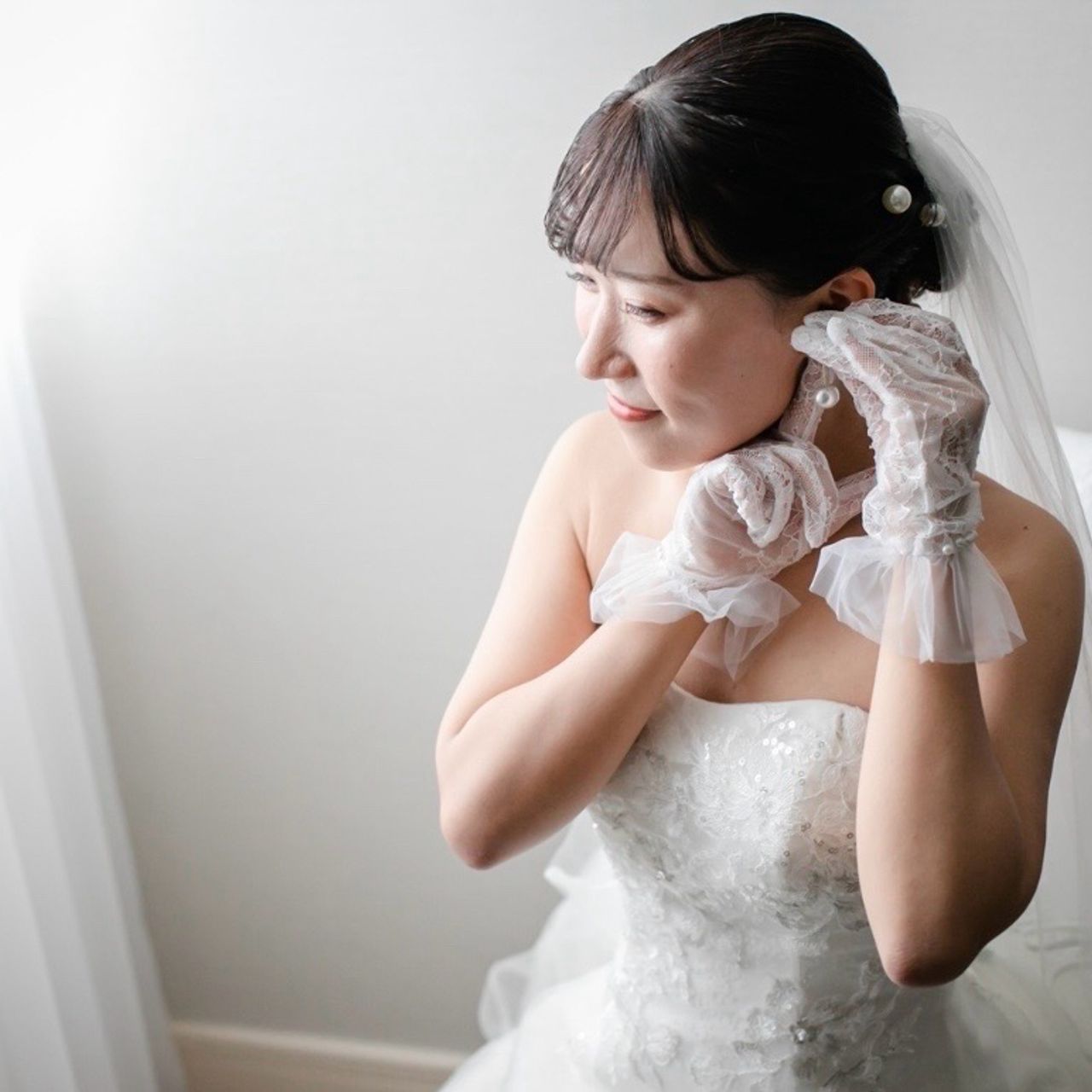 ウェディングドレスでは真珠のパールを頭に沢山つけました♪