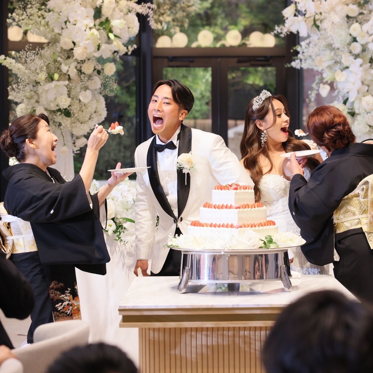 他にも、ゲスト参加型のスクラッチカードやアイスの早食い競争、両家の母がノリノリでケーキを運んでくる演出なども、今でも多くの方から「楽しかった」と褒めていただけます。