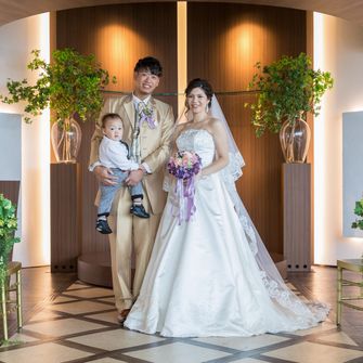 当時0歳の息子がいて、ファミリー婚をテーマにアットホームな結婚式にしました。子連れのゲストも多かったため、子供が参加しやすいようにキッズスペースを取り入れたり、息子のリングボーイの演出なども取り入れました。ゲストも参加できるようカラードレスクイズや、小物クイズ、プレゼントリレーをしたりと笑顔が溢れる結婚式にして、集まってもらったゲストの皆様に感謝を伝えることができるよう演出多めにしました!