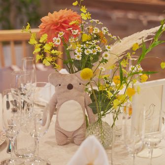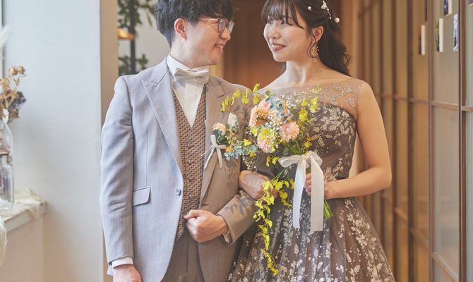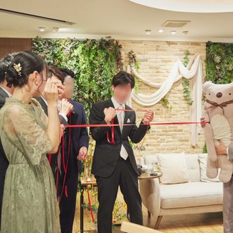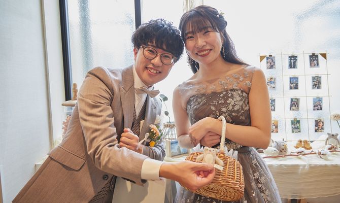 大好きなぬいぐるみ"フモフモさんのここもと一緒に過ごしたい"という想いと、お互いにナチュラルなテイストを好んでいたことから、テーマは「ここもと過ごすナチュラルウェディング」にしました。