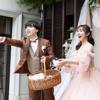 挙式にはダーズンローズセレモニーや、ドライフラワーをボックスに入れるゲスト参加型の結婚証明書の演出を取り入れました。披露宴ではフラワービュッフェなど、ゲストと一緒に作り上げるイベントを多く盛り込んだのがこだわりです。