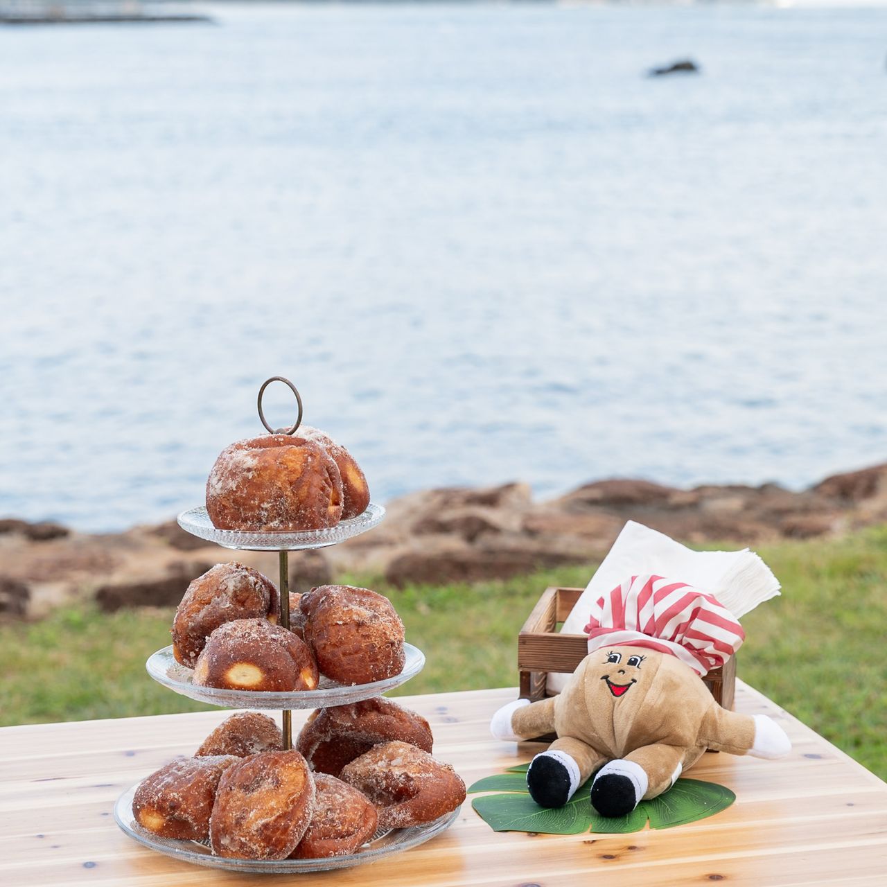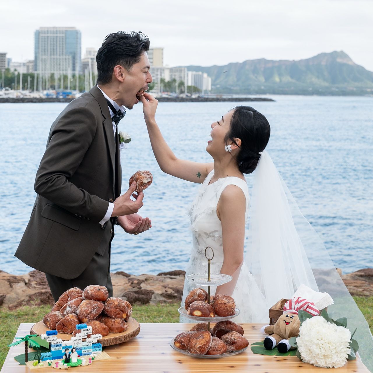 マラサダタワーを用意してもらい、マラサダでのファーストバイトをしました。