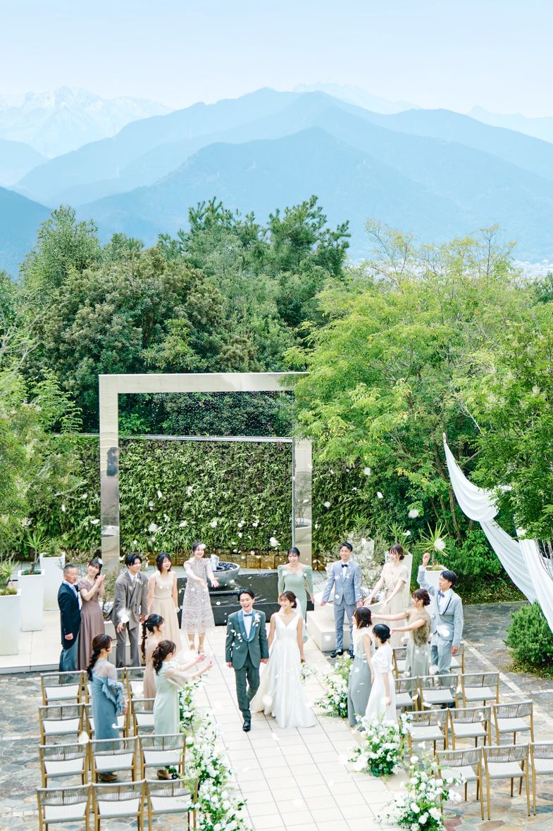 階段セレモニーでは大階段を降りますが、その景色がとても素敵。2つある披露宴会場からの景色も大自然が見渡せます!(ゲストハウス型なので、他の挙式に参列されている方と会うことがないのも魅力♩)