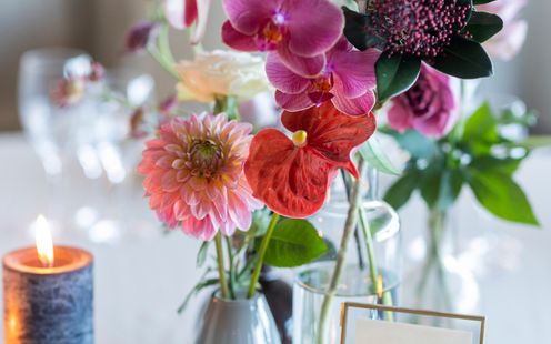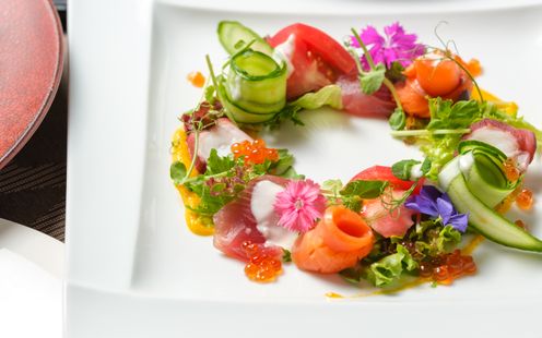 祝宴にふさわしい華やかな和洋の創作料理。経験豊富な料理人が厳選食材を活かしておもてなし