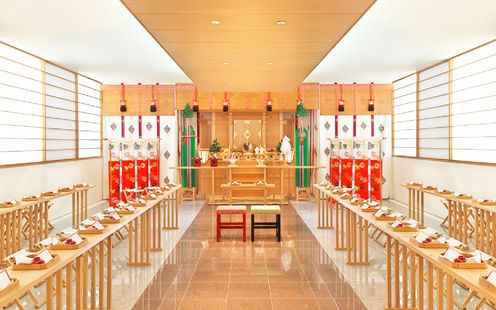 雅楽の調べに包まれて日本伝統の儀式にのっとった古式ゆかしい婚儀が叶う