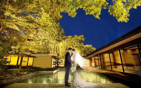 河文の象徴とも言える石舞台「水鏡」での屋外和婚式。水面にはふたりの美しい晴れ姿を映し、それを取り囲む木々がふたりを盛大に祝ってくれているかのような晴れやかな舞台です。四季折々に景色が美しく変化する中で、琴の生演奏を取り入れたり、「水合わせの儀」を行うなど、日本らしい趣のある人前式が叶います。古き良き時代の職人技術による建築様式が、日本の花嫁の奥ゆかしくも凛とした魅力を引き立て、和の結婚式を盛り上げます。