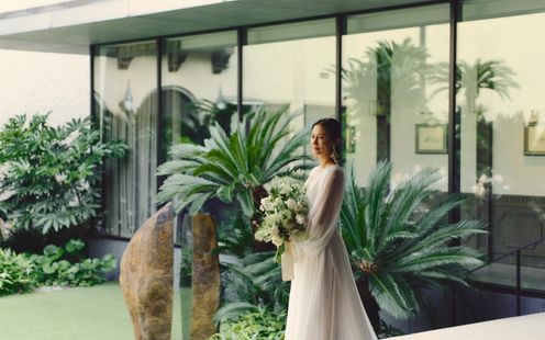 かつて紀州徳川家上屋敷があった由緒正しい地に、1995年に誕生した当館。宮内省内匠寮の手による気品あふれる洋館は、2011年に東京都指定有形文化財として登録されました。16世紀英国のクラシカルなチューダー様式をまとった外観、楕円アーチが美しい開放的なテラス、館内を彩る上品なステンドグラスなど、すべてが時を重ねても色褪せない風格を宿しています。特別な空間を背景に、特別な一枚を撮影して。