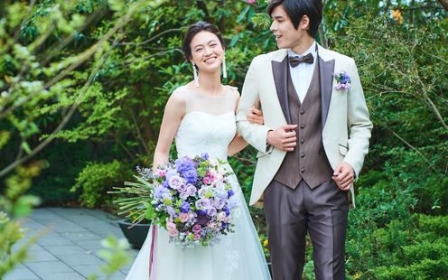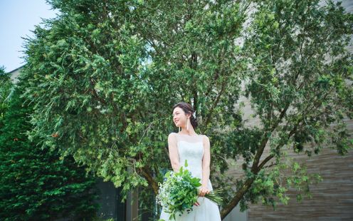 純白のウェディングドレスが映えるまばゆい緑の中で記念撮影を!幻想的なナイトパーティも人気