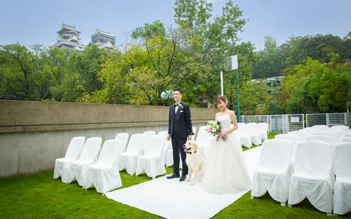 熊本城を望む贅沢なガーデンと多彩な演出で彩る特別な時間。自然あふれるウェディングシーン