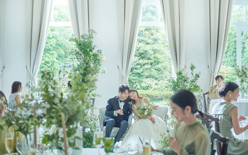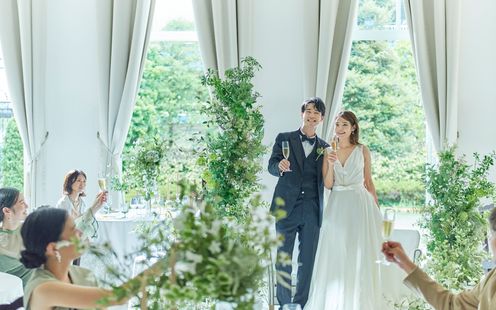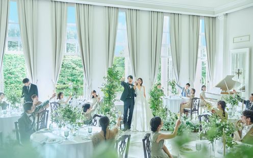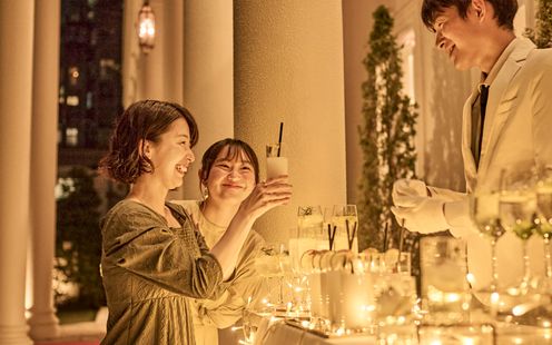 《★系列ホテルがミシュランガイドの星を8年連続で獲得★》本格フレンチでありながら、日本の四季折々のおいしさも厳選して取り入れた渾身のフルコース。地域の農家の方々とも協力し合い、ロスフードの問題にも取り組みながら、この場所だからこそつくることのできるメニューをご用意しています。料理はベストなタイミングで大切なゲストへお届けできるように、キッチンを併設。食材の持つ味覚と魅力を大切に仕立てたメニューで、ゲストに笑顔を運びます。また、ゲストの好みに応える幅広いドリンクメニューはもちろんのこと、その土地ならではのメニューにこだわるT&Gでは、日本のワイン農家とも協力しあい、国産ワインもオンリスト。地域や生産者への応援にもなる心地よい循環を、ふたりのウェディングパーティに取り入れます。