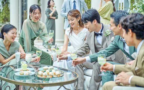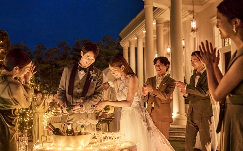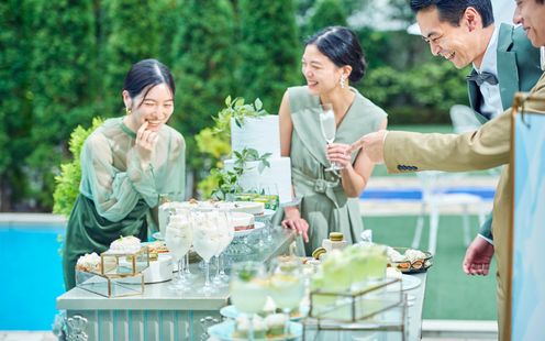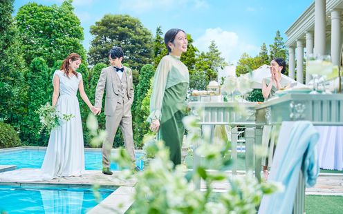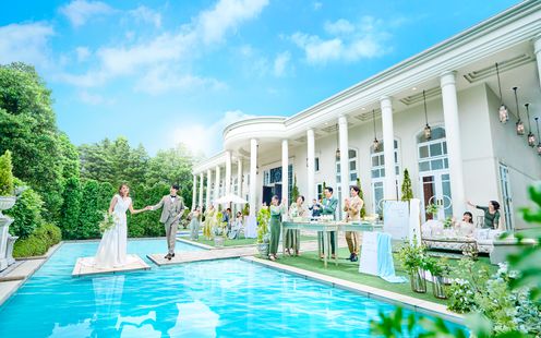 プール付きガーデンもふたりのアイデア次第で自由なウエディングステージに早変わり♪挙式後にフラワーシャワーやブーケトス、バルーンリリースなどのアフターセレモニーや、祝宴前のウエルカムパーティ、そしてパーティの中ではフォトブースを設置して記念撮影を楽しんだり、ナイトタイムにはカクテルパーティを行ったりしてふたりらしい演出をちりばめてみては!専属プランナーがふたりの希望にそって外国映画のワンシーンのようなオシャレなパーティを提案いたします。