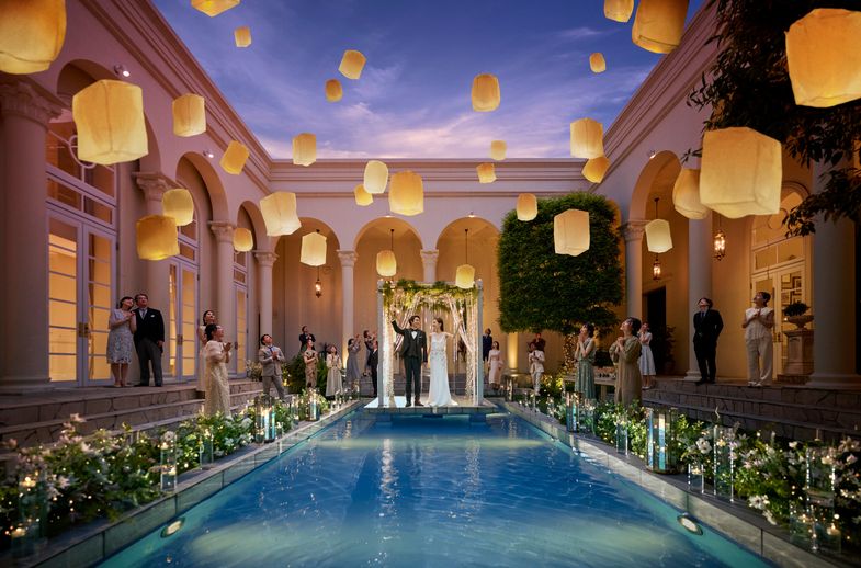 03.会場隣接のプール付ガーデンの使い方はふたり次第。 プライベート空間で非日常感を満喫