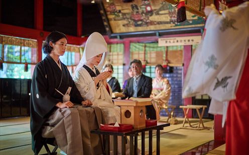 挙式スタイルは教会式・人前式の他に、赤坂氷川神社の天照大神に誓う格式ある厳かな神前式も。