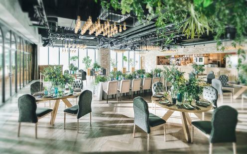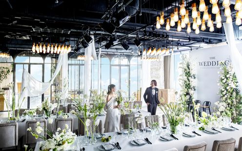ヘリボーン柄のフローリングが印象的な【ATELIER WAREHOUSE】は、スタイリッシュで洗練された空間。一方、白を基調にした爽やかな会場【ALELIER ROOFTOP TERRACE】の2つのパーティ空間からお選びいただけます。様々なスタイルを楽しめる自由度の高い会場は、専用ロビーまで含めたワンフロアが貸切可能。400インチのエクストラワイドスクリーンや最先端の音響・照明設備も完備。様々な演出手法でパーティを盛り上げます。