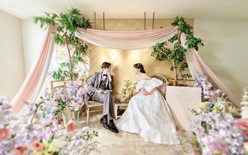 当館のコンセプトや想いに賛同してくれた、フラワー、ヘアメイク、フォト、ムービー、グラフィックの5つのジャンルをおふたりらしく表現するフルオーダーウエディングも可能。まずは描いている結婚式のイメージを聞かせてください。アーティストが作品を生み出すアトリエのように、たくさんのアイデアを用意してお待ちしています。