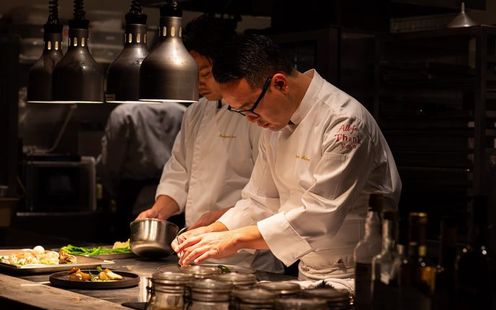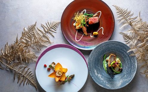 手元に届いた時の華やかさ、香りなど、ゲストに感動を与える料理の数々。食材の旨味を活かすために、旬の食材を採り入れることを大切にし、フレンチの技法と和の季節感や味わいを掛け合わせた自慢の料理でゲストをおもてなしいたします。隣接キッチンから届く料理は、1℃、1秒にこだわって絶妙のタイミングで提供いたします。全国でレストランや料亭、ワインショップなども運営している『食』にこだわったエスクリグループの味を是非お楽しみください。