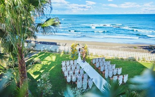 | その他 | スタッフより/「青島を望む絶好のロケーションとプライベートガーデンを有するゲストハウスを全館貸切にして、おふたりらしいウエディングをお手伝いいたします」。少人数や二部制対応、オンラインでの見学や相談可 |
