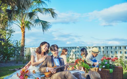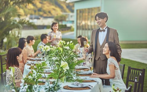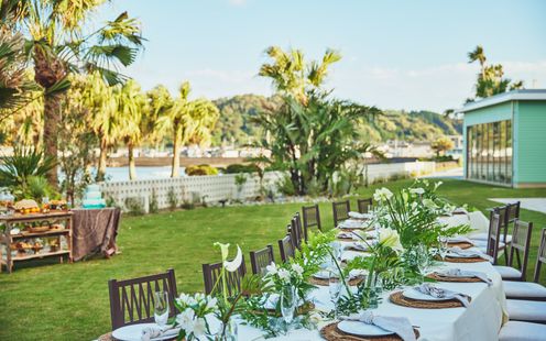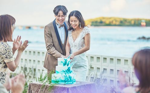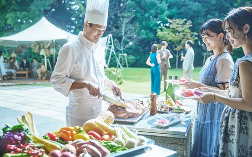 1組で貸切れるからガーデンもふたりの自由に利用できるのが魅力です。海をバックにガーデンから登場しゲストへのサプライズしたり、波の音をききながら迫力満点のグリル調理の演出も。目の前でサーブされる熱々のお料理はゲストからも大好評です。人気のデザートビュッフェ、ケーキカット、さらにはガーデン挙式も叶います。