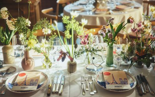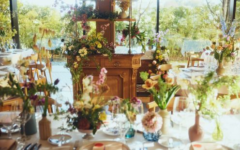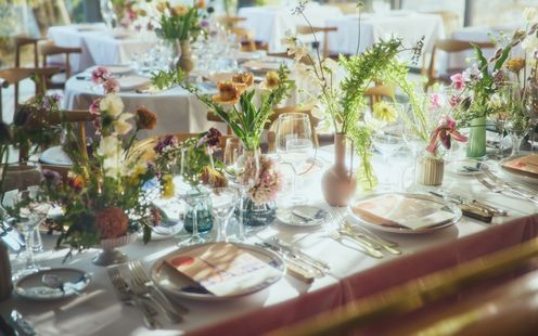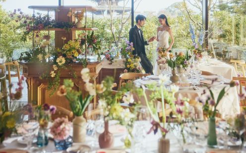 一つひとつ洗練されたアイテムからそれらを彩る花一輪にいたるまでをトータルコーディネート。料理、空間、文化が調和するこの場所で、ふたりの想いをアイテムにもこめて。