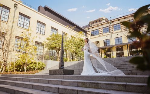 お部屋でゆったりお支度が終わった後はセレモニーの前に館内でのロケーション撮影時間を設けております。どこを撮っても絵になる美しい風景の中、かけがえのない瞬間を写真におさめてください。