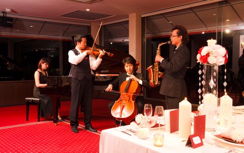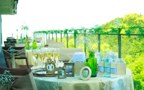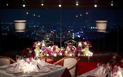ふたりの憧れのスタイルを丁寧に聞き、専属フローリストがふたりらしいおもてなし空間を創り上げます。自然光が差込む上質空間を寛ぎに満ちた雰囲気にしてみては。また、ナイトタイムには美しい夜景が特別な1日を彩ります。