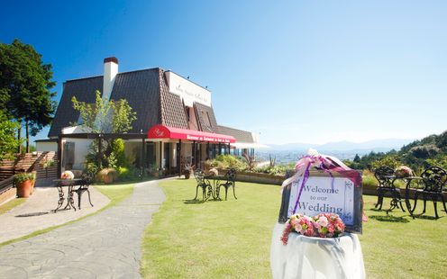 何も遮るものがない青空と自然に囲まれて挙式やウェルカムパーティ、楽器演奏などガーデンの使い方はふたり次第! 自由度の高さが自慢のガーデンです。