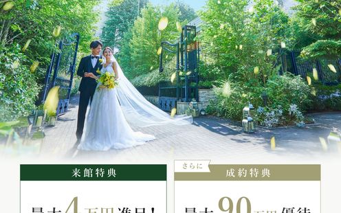小鳥のさえずり、四季折々の自然と美しい木漏れ日に包まれた目白の森で大切なゲストの皆さまと心地よく寛いでいただくことができます。挙式前には撮影タイムが設けられておりガーデンや館内のらせん階段などでゆっくり記念撮影が可能です。挙式後はフラワーシャワーやバルーンリリースも。自然と、皆様との心地よい距離感が、あたたかでやさしいお時間を演出します。