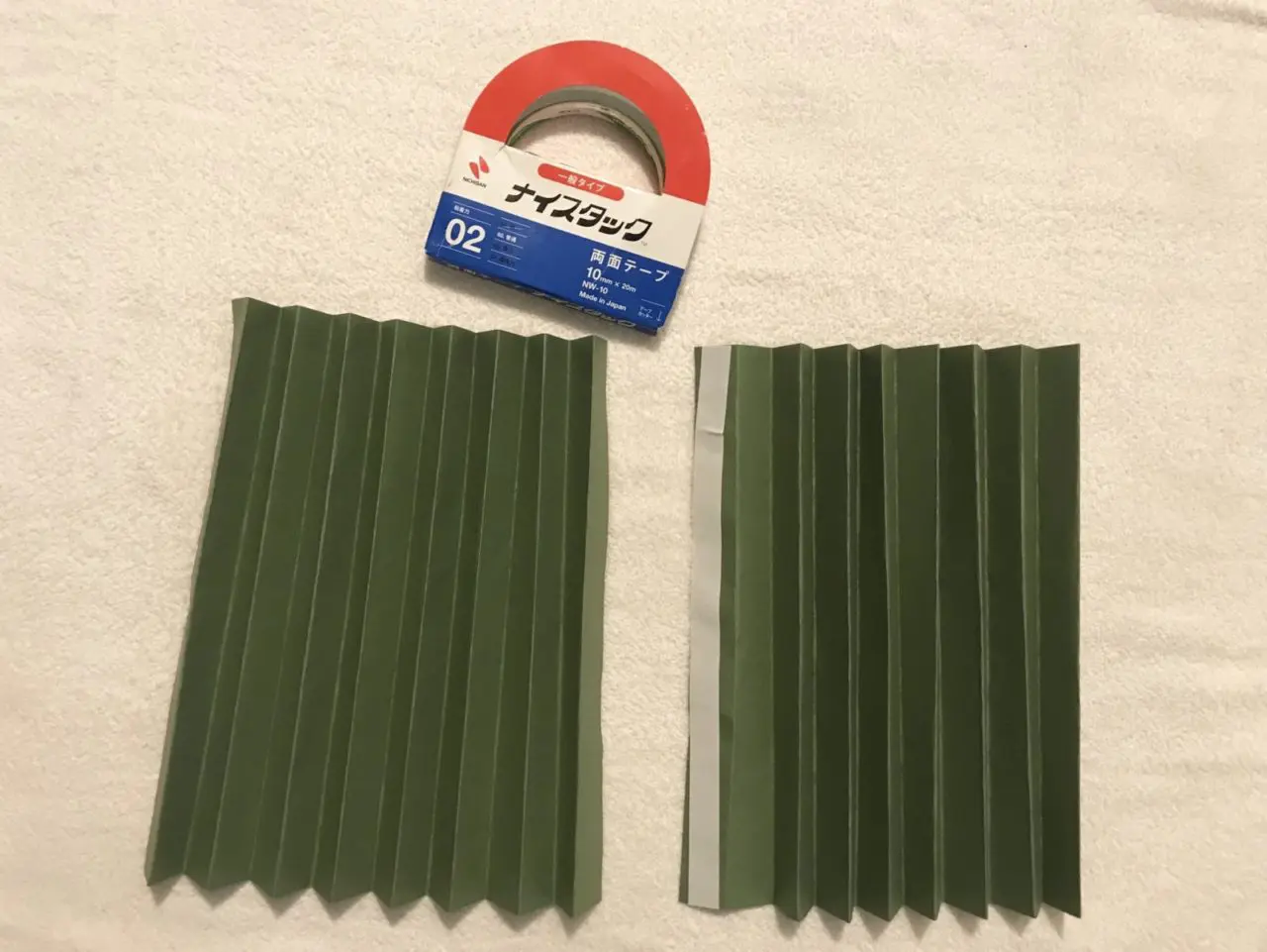 ①画用紙2枚をそれぞれ蛇腹折りにする