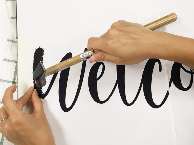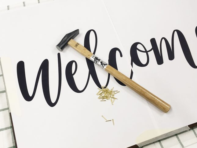 ②デザインのフチに沿って、等間隔(1.5cmくらいが◎)に釘を打つ