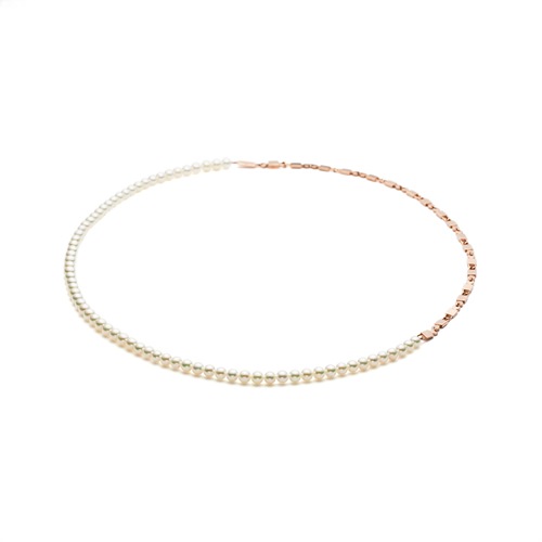カーブがかったベースに真珠を並べたロングネックレス。カジュアルさを感じさせるデザインで、TASAKIこだわりのパールの美しさが際立っています。