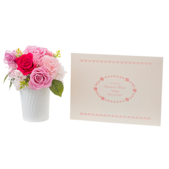 人気キャラクターの人形やプリザーブドフラワー・生花などとセットの電報もあり、言葉とギフトを一緒に届けられます。