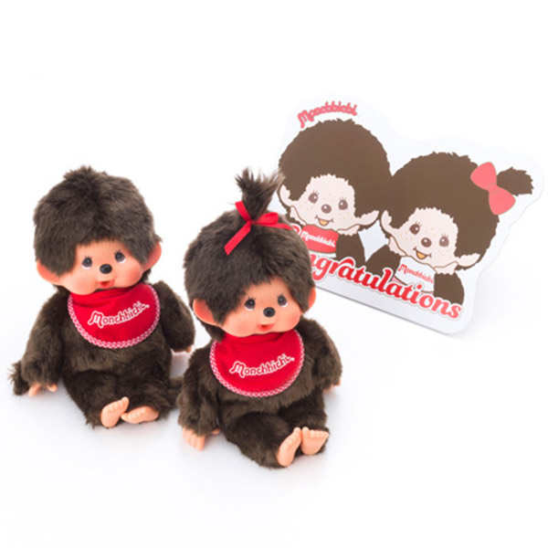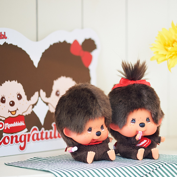 昔から愛されているモンチッチとベビチッチのぬいぐるみ電報。触り心地もよく、インテリアとして飾っておきたくなるかわいさ♡結婚式などのお祝いで送る電報に向いています。