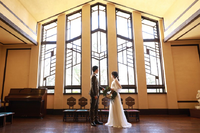 自由学園明日館の魅力はなんといっても、その建築です。あのフランク・ロイド・ライト氏が手掛けた重要文化財で結婚式をあげることができるんです。建築が好きな方のみならずそのクラシックで上質な雰囲気は、大人のお洒落婚には、ぴったりの会場です。お洒落花嫁なら一度はフェアに足を運んでみてもいいかも。