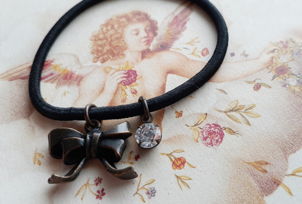 TARO KAMITANIのロゴマークにも使われている「リボン」がヘアゴムになりました♡アンティーク調のリボンパーツと大粒のスワロフスキーがシンプルだけど可愛くて、使いやすそう◎