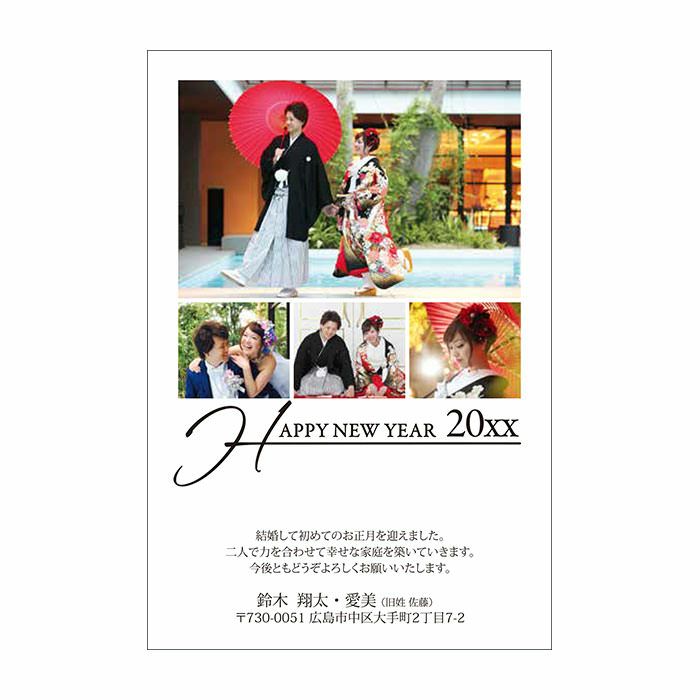 年賀状はおしゃれでかわいいデザインがいっぱい。結婚報告にぴったりなデザインも用意されてます。