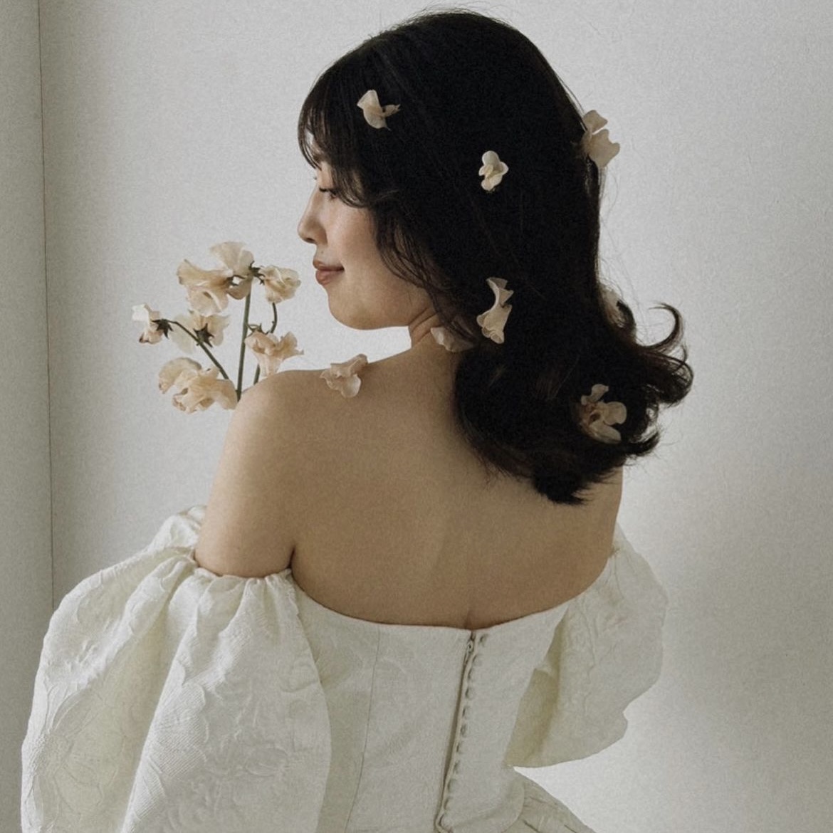 実際にお花・パール・ビジューなどをお肌につける流行りのボディ&ヘアメイクを取り入れた先輩花嫁さんたちは、どんな風にドレスと合わせたのかご紹介していきます!