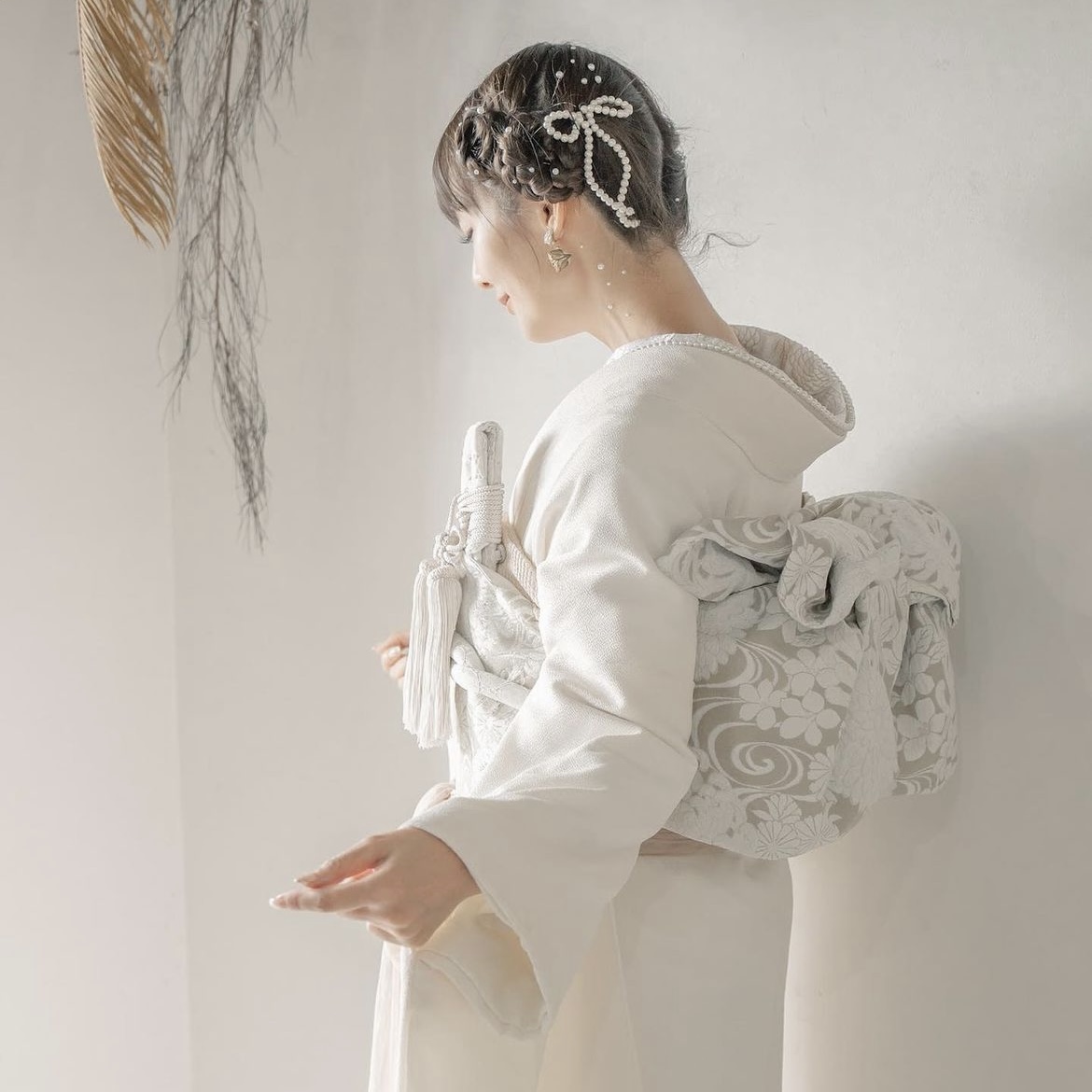 従来の落ち着いた和装のイメージとは異なり、ゴージャスなイメージに仕上げることができます✵今っぽくてハイセンスな組み合わせなのが魅力♡