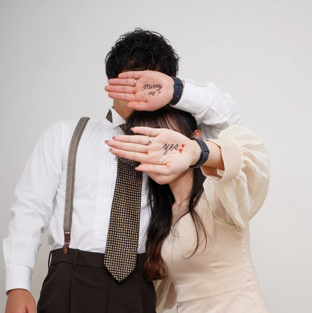 友達やSNSで報告するとき、婚姻届や指輪、お花、2人のツーショットなどアイデアがたくさんあって、どんな写真で報告しようか迷いますよね?
