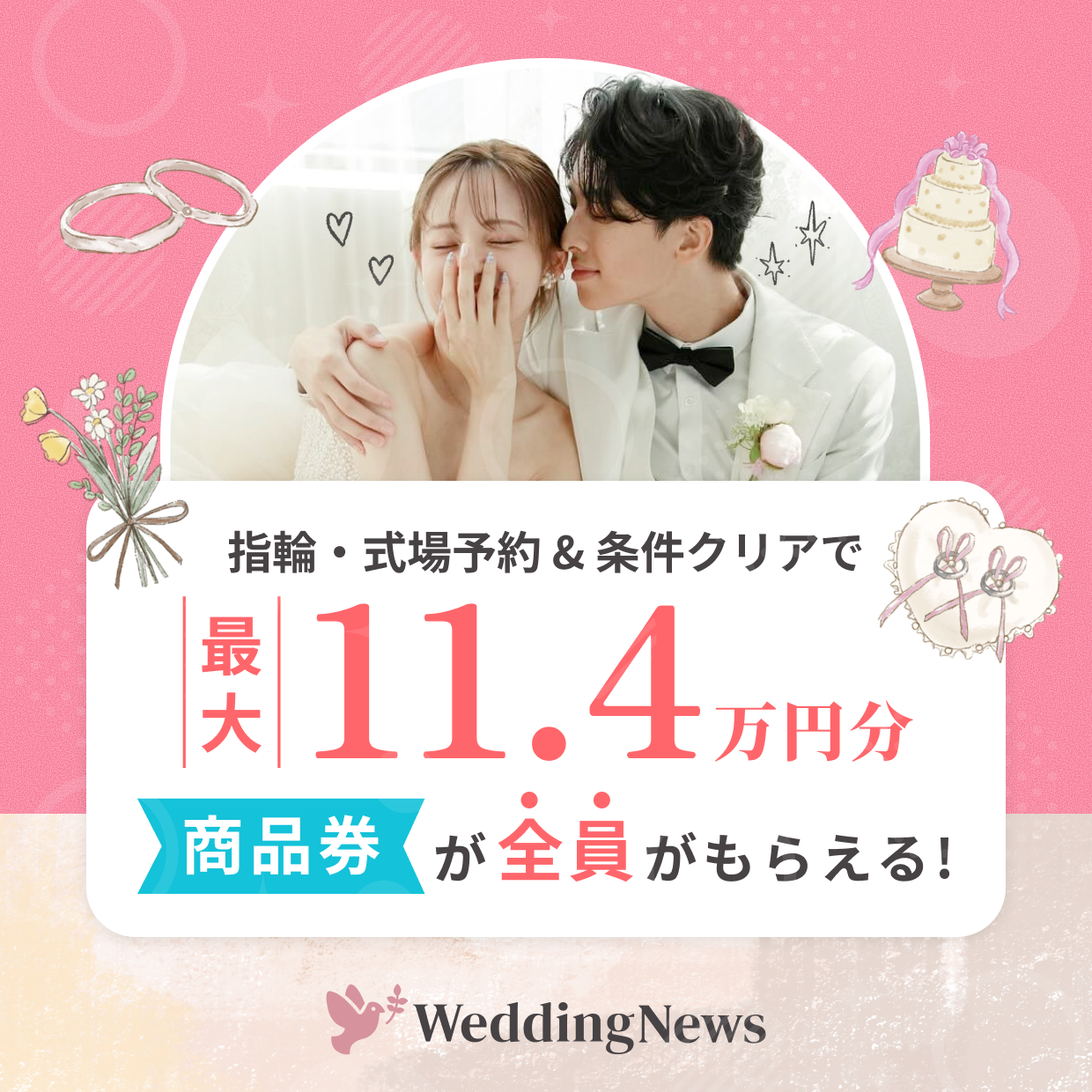指輪購入前にキャンペーンにエントリーをして、条件をクリアすると最大114,000円分の商品券がもらえるキャンペーンを開催中♩