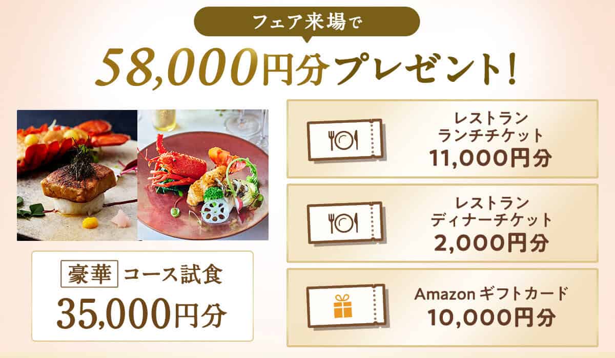 【豪華特典】キャンペーン予約&来場だけで58,000円分の特典がもらえる!