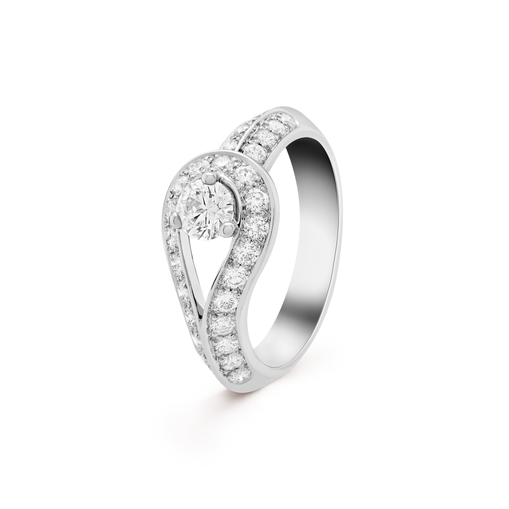 ダイヤモンドのリボンが、センターダイヤモンドを包み込んでいるかのようなデザインからは、優しい雰囲気も漂います♡
