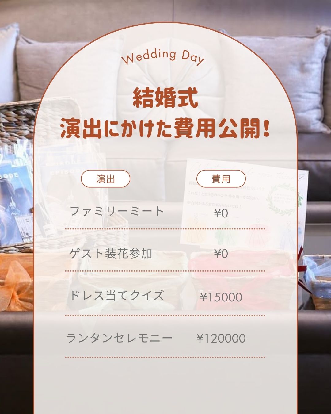 用意したものの費用などと合わせて、どんな演出だったのか詳しく聞かせていただけると嬉しいです♡