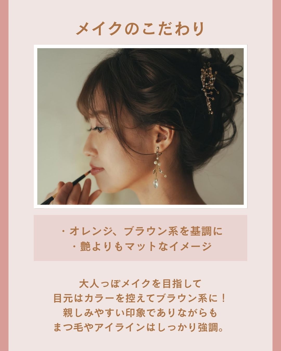 ヘアスタイル、ベースメイク、アイメイク、リップなど、こだわったポイントや意識した雰囲気などをぜひ教えてください!