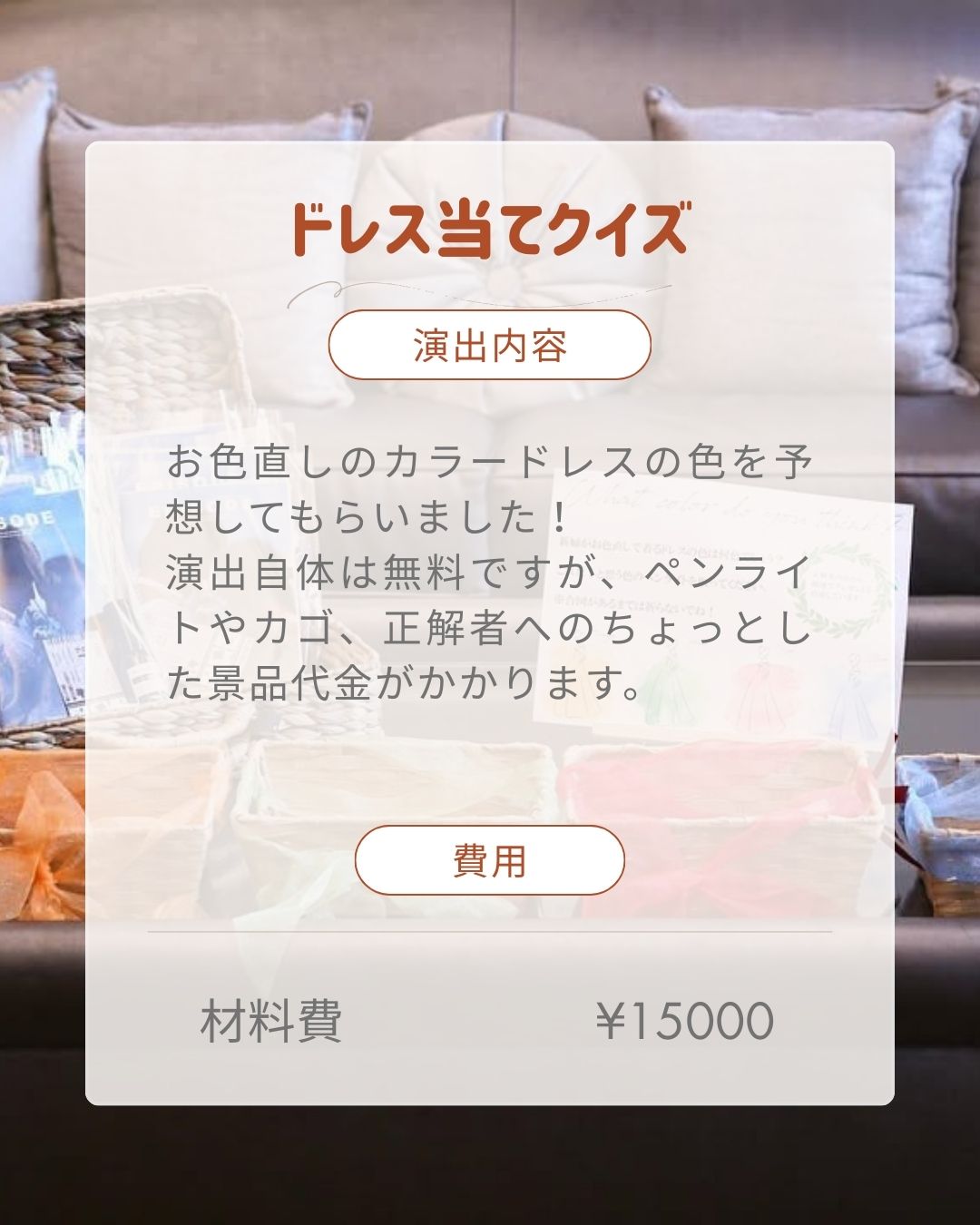 費用がかからずに出来た演出もあれば教えてください♩