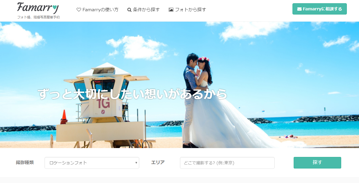 ウェディングフォトをご検討の方はFamarryでカメラマンを探して、お気に入りの1枚を撮影してみてはいかがでしょうか?
