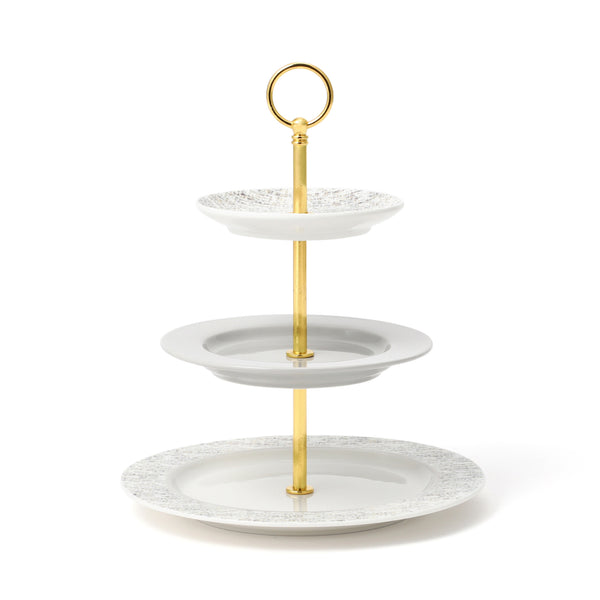 上品なゴールドの支柱に、ツイード柄のプレートを重ねたセラミックケーキスタンド♡