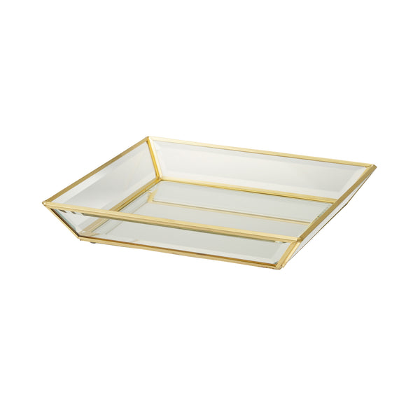 ゴールドのフレームと、ガラス、ミラーの輝きが上品でシンプルなデザインの小物入れです。