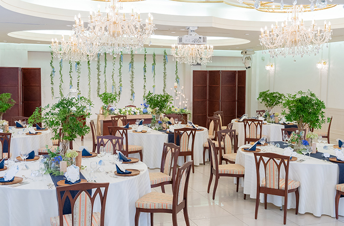 ③披露宴会場も、木と明るい白い壁が調和された空間なので、どんな装飾にも相性ぴったり♡ 理想のイメージに彩ることができます**